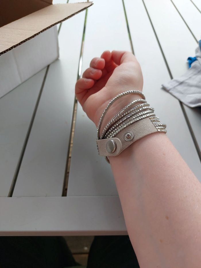 Vends bracelet multiple en daim et stass beige #juhjuhbijoux