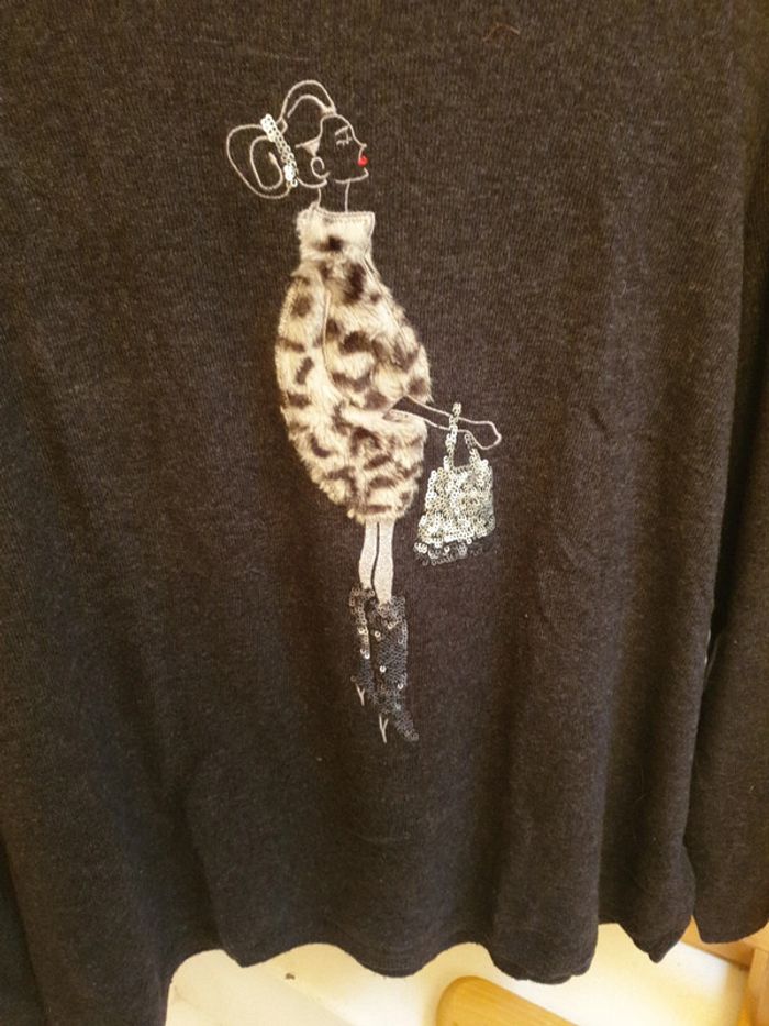 Pull comme neuf avec broderies sequins et application fausse fourrure ( sur la broderie de la robe) Taille L
