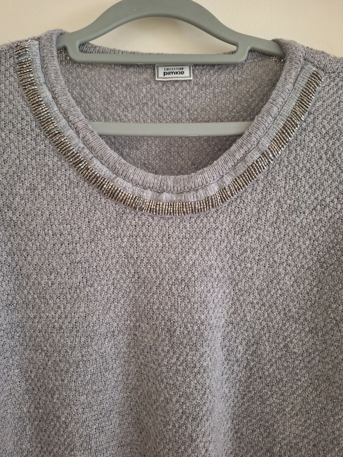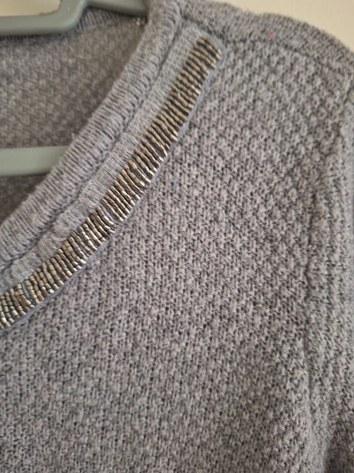 Pull gris col rond  à strass argenté  taille S - photo numéro 7