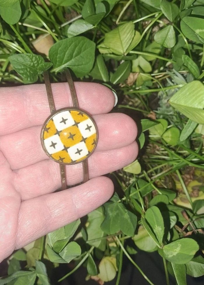 Bracelet qui s ouvre avec un système à ressort. Médaillon look vintage. En métal. Original et féminin