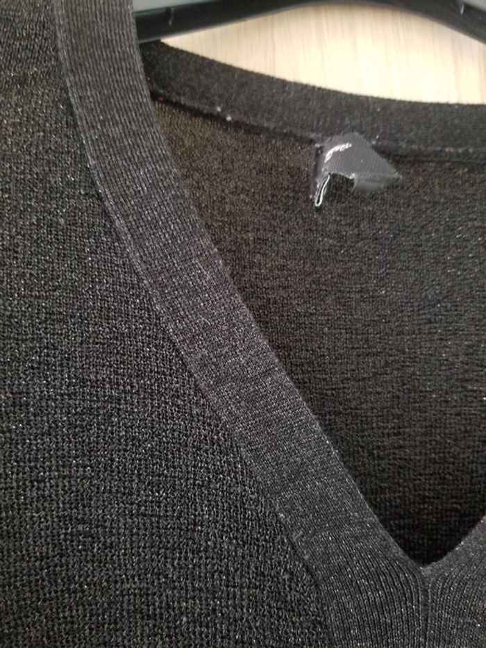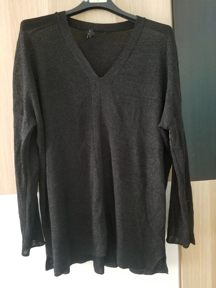 Pull noir avec un fil brillant qui rehausse sa couleur. Plutôt oversize 2 fils tirés dans le dos voir photos Taille M/L #Mmadamepirate #Lmadamepirate