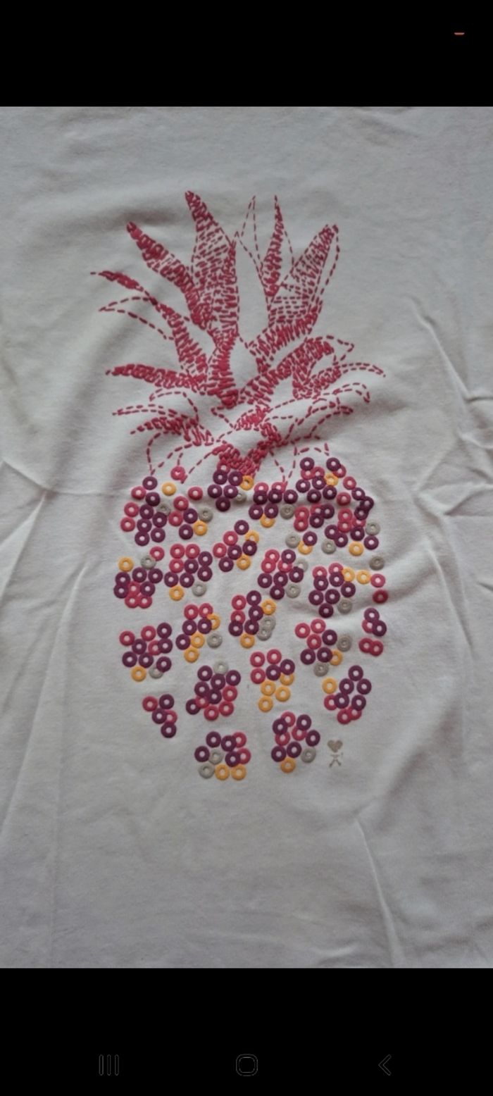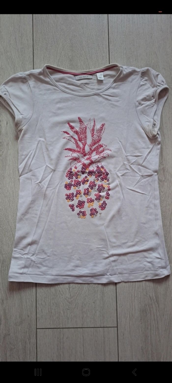 Tee-shirt fille Okaidi 12 ans Trace jaune à l'arrière (photo) Manches courtes Motif ananas