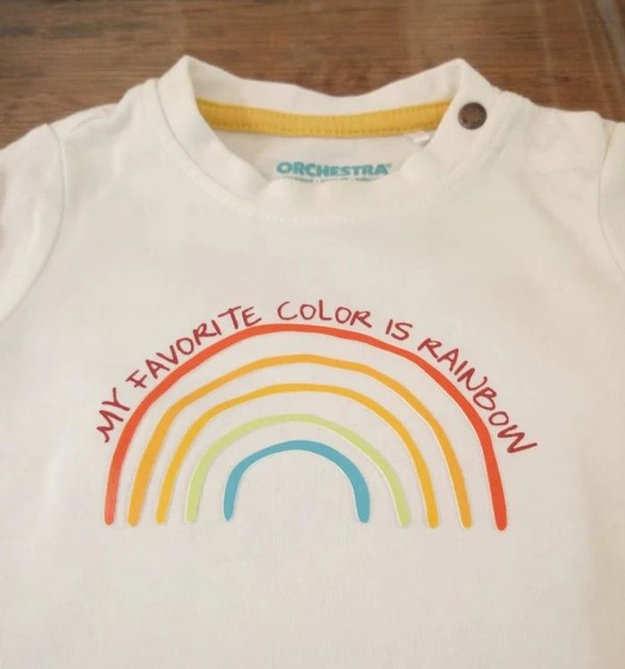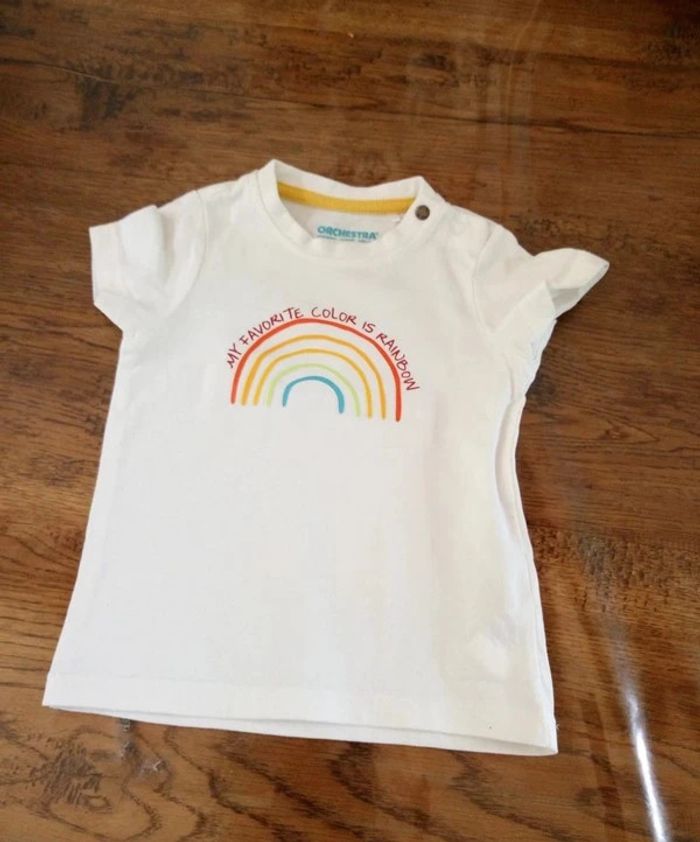 Vend un tee-shirt manches courtes Couleur blanc motif arc-en-ciel Marque orchestra Taille 9 mois Fermeture pression a l'épaule #stef62180_neufmois #arcenciel #9moisorchestra #orchestra9mois #9moisété #été9mois