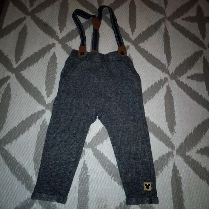 #stef62180_douzemois #stef62180_dixhuitmois Vend un pantalon a bretelles amovibles Mickey Noir et gris chiné #mickey #disney