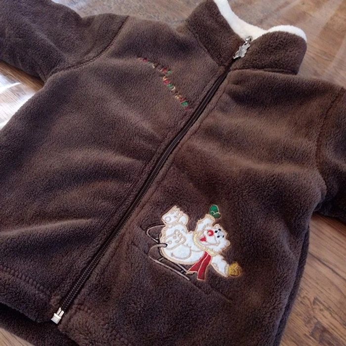 Vend un gilet polaire de couleur marron et blanc Très chaud Taille 1 an Très peu porté #stef62180_douzemois