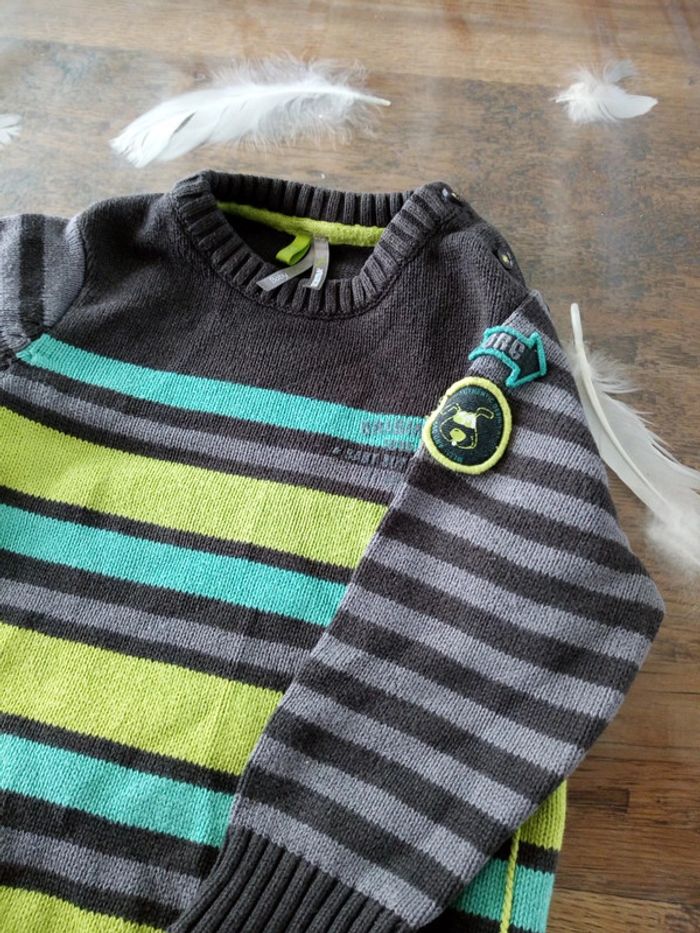 Vend un gros pull Marque orchestra Taille 12 mois Pull hiver rayures vert et gris #stef62180_douzemois