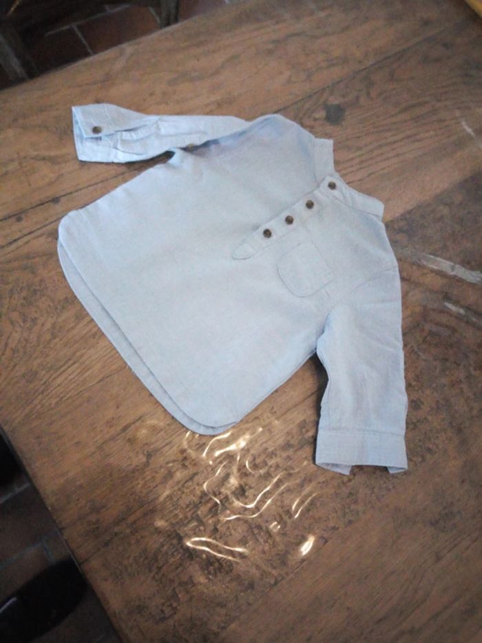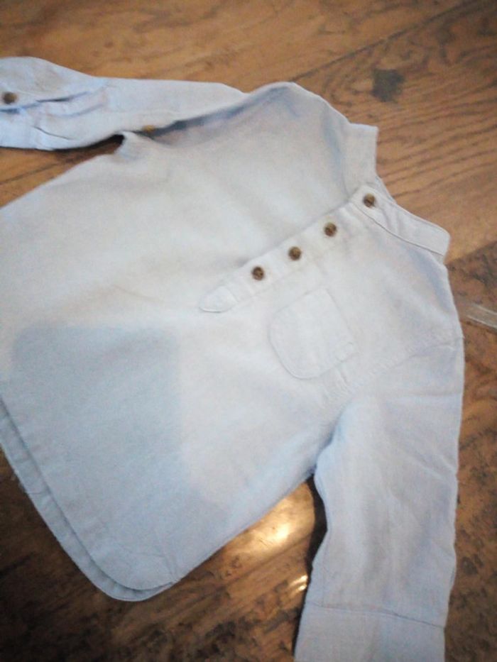 Vend une chemise manches longues Marque Kiabi Taille 9 mois Couleur bleu clair Col officier Fermeture boutons a l'avant #stef62180_neufmois