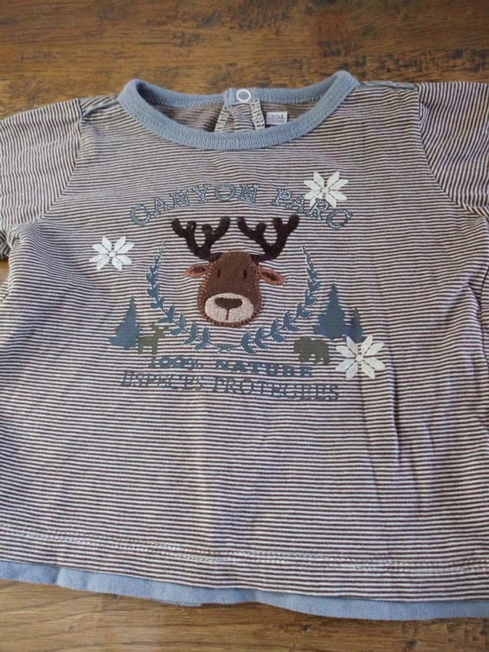 Vend un tee-shirt manches longues Marque sergent major Taille 6 mois Motif cerf forêt nature Canyon parc #stef62180_sixmois
