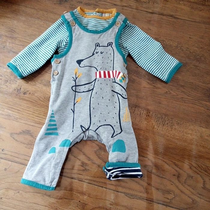 Vend un ensemble de marque orchestra Salopette et tee-shirt manches longues Salopette pouvant être réversible je pense Taille 3 mois Motif ours #stef62180_troismois