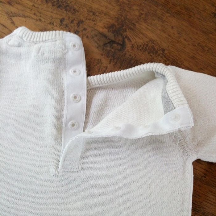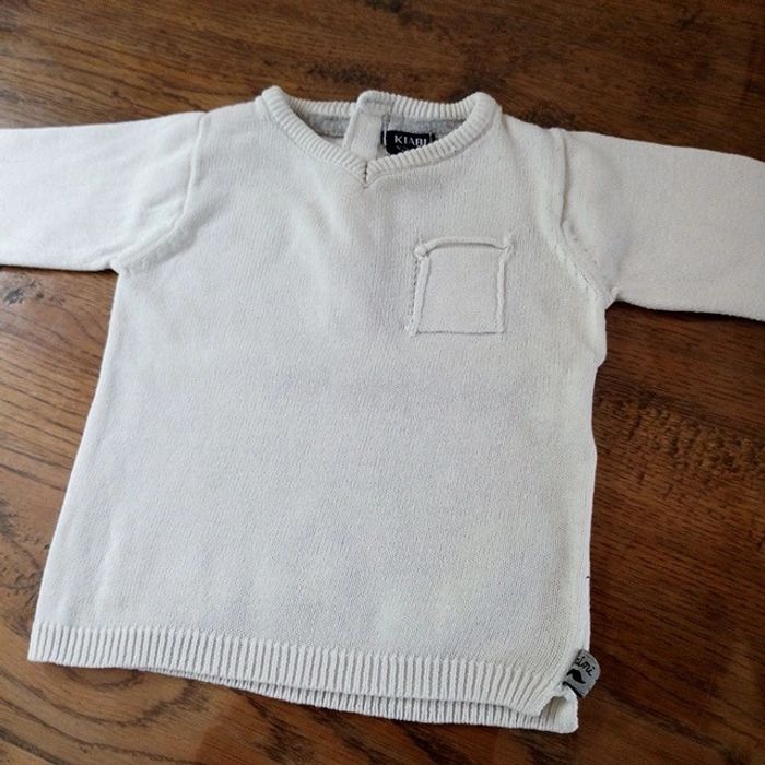 Vend un pull blanc léger de marque Kiabi Taille 3 mois #stef62180_troismois