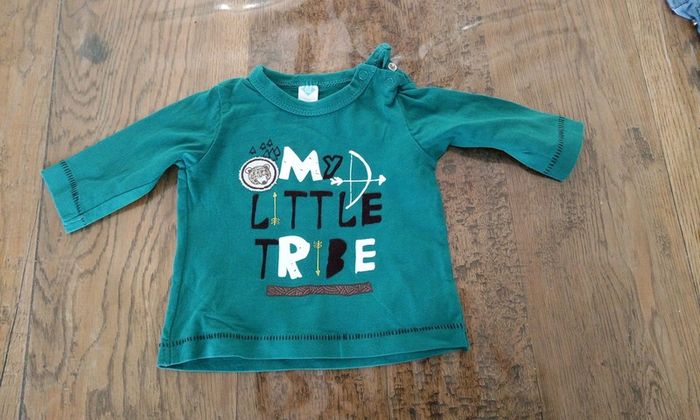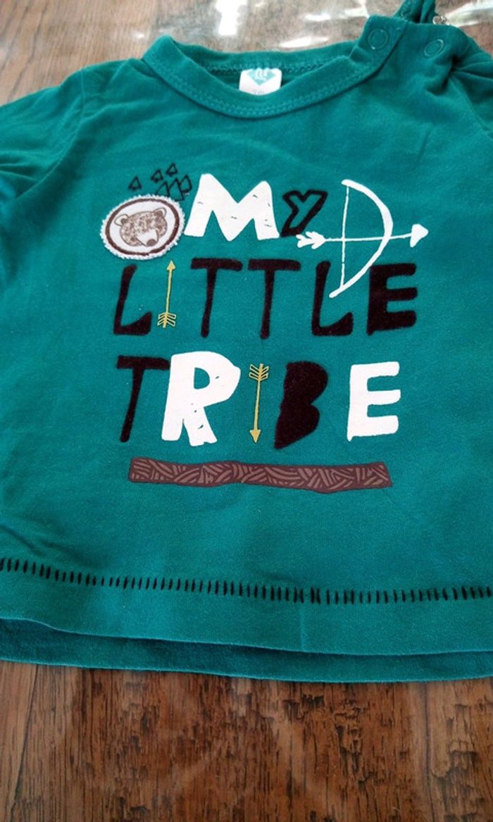 Vend un tee-shirt manches longues Fermeture pression a l épaule Taille 3 mois Marque tex Motif my little tribe / ma petite tribu Thème indien arc ours #stef62180_troismois #stef62180_indien