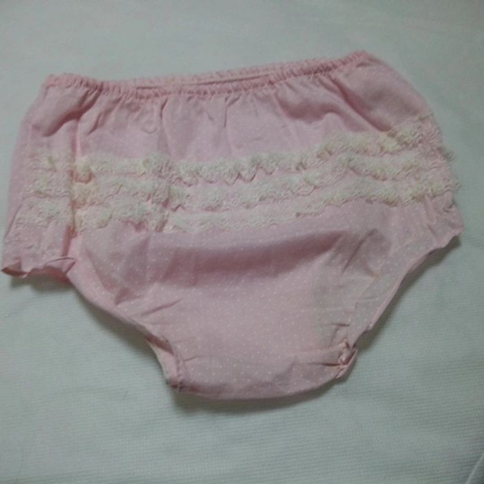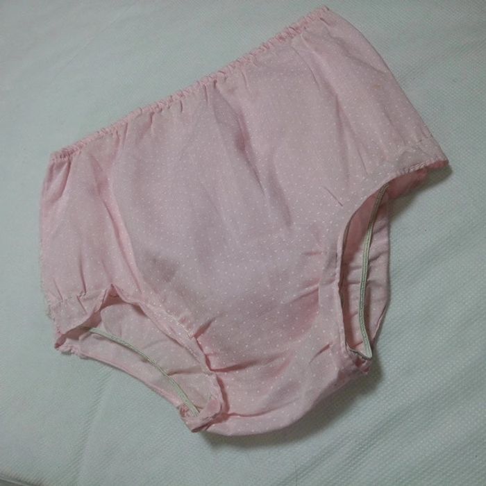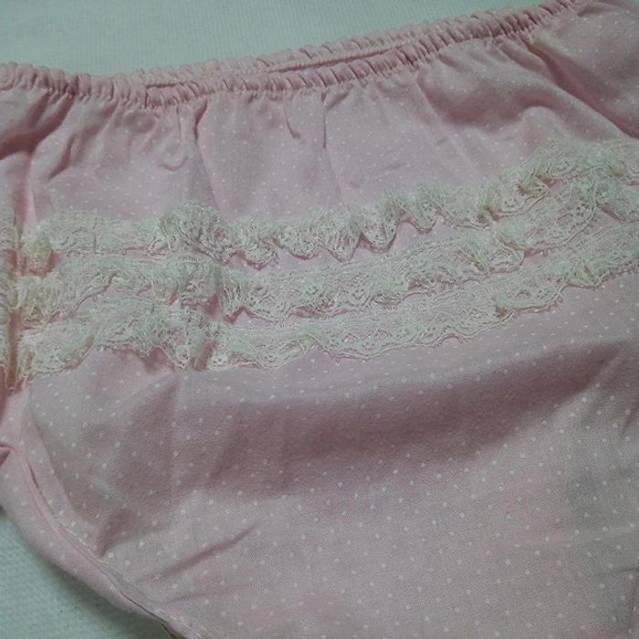 Vend une culotte de couleur rose pâle a pois blancs Élastique détendu Rétro vintage ancien Je ne suis pas sur de la taille Dimensions largeur 23 cm largeur 26.5 cm #stef62180_vintage #stef62180_fille6ans #stef62180_fille