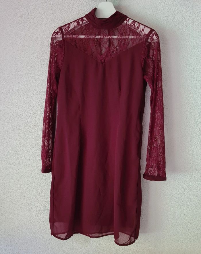 Robe bordeaux de la marque Vera Moda avec un bouton supplémentaire En voir plus : #Fannydsntaille38M #Fannydsnrobes