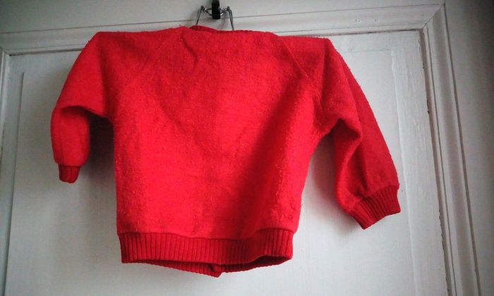 Vend un gilet rouge Ancien rétro vintage Made in France Marque nouvelles galeries premiers âge Taille 12 mois Bien porté présence de bouloches #stef62180_vintage #stef62180_douzemois #stef62180_fille12mois