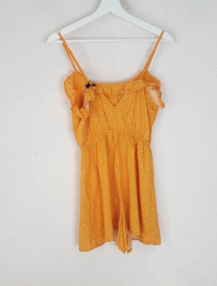 Combi short jaune à pois blancs et volant sur le haut, de la marque Bershka Un bouton supplémentaire est fourni avec la combi (cf photo 3) En voir plus : #Fannydsncombinaisons #Fannydsntaille36S