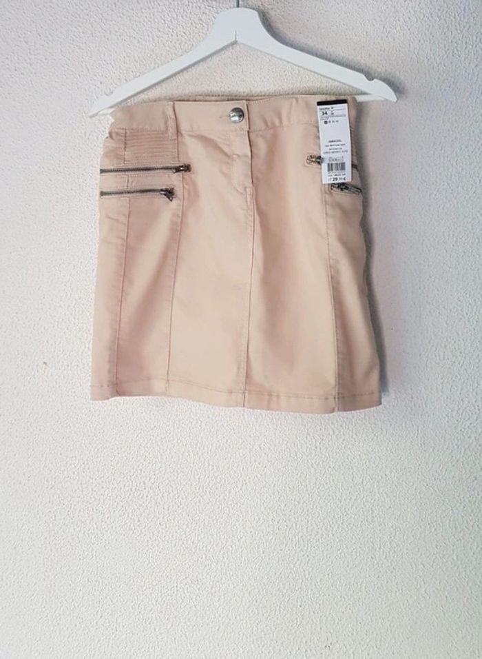 Jupe beige avec de fausses poches sur le devant et des vraies derrière, de la marque Cache Cache Valeur : 29,99 € En voir plus : #Fannydsntaille34XS #Fannydsnbas