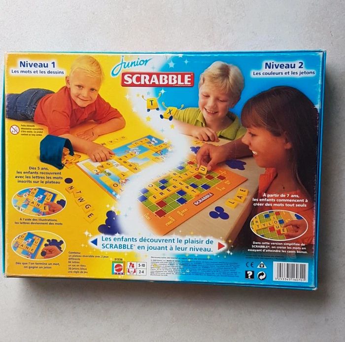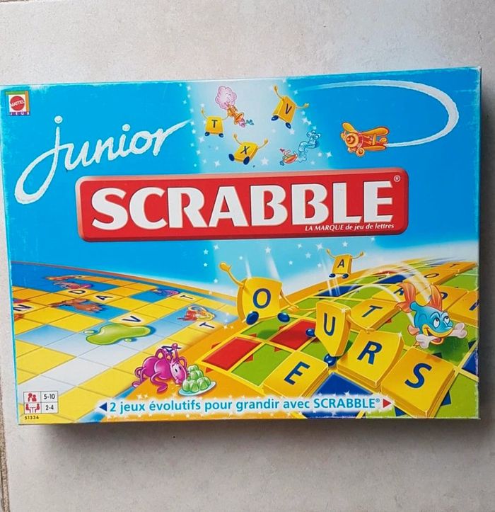 Jeu de plateau Scrabble Junior de la marque Mattel, il manque les règles mais sinon le jeu est complet, les lettres ont été comptées avant la mise en vente. Le contenu est en bon état et la boîte est un peu abîmé (cf photos 1 et 2) Deux plateaux possibles car c'est une version adaptative pour les enfants A partir de 5 ans En voir plus : #Fannydsnjeux