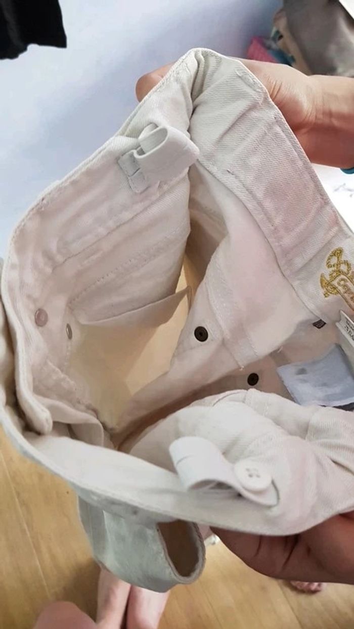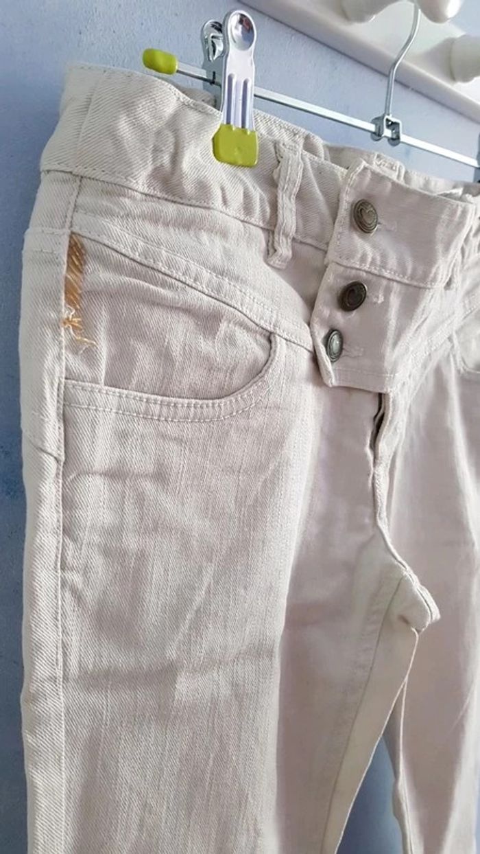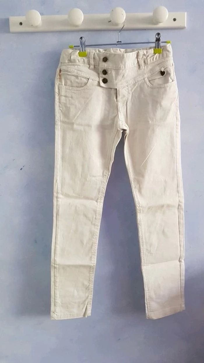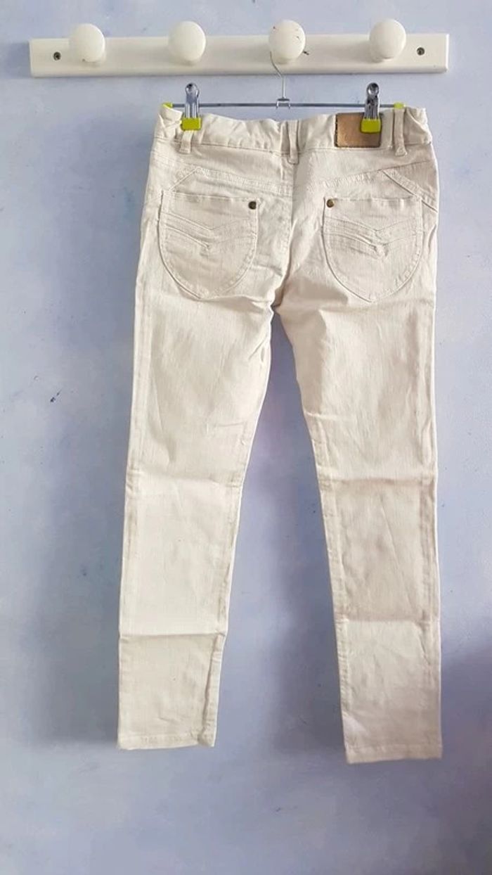 Pantalon slim blanc réglable, enfant, taille 12 ans, defaut perles au dessus de la poche droite. En voir plus : #Fannydsntaille12ans #Fannydsnbas