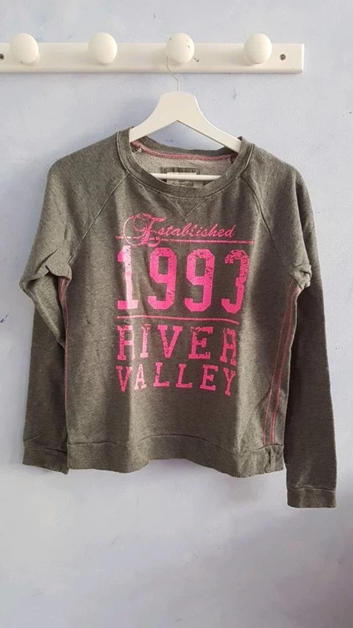 Haut H&M gris avec écriture rose, 170cm. En voir plus : #Fannydsnhauts #Fannydsntaille16ans