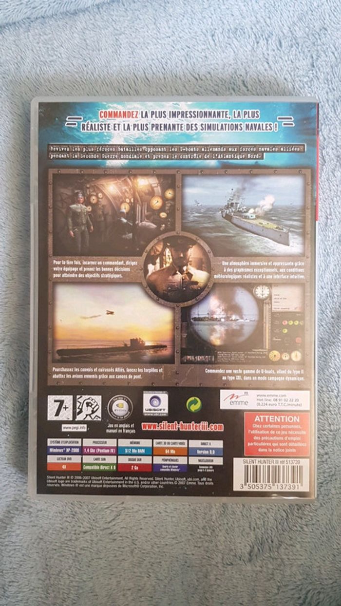 Jeu PC Silent Hunter III avec de petites rayures et boîte un peu endommagé (cf photo 4), compatibilité (cf photo 3) 7 ans et plus En voir plus : #Fannydsnjeux