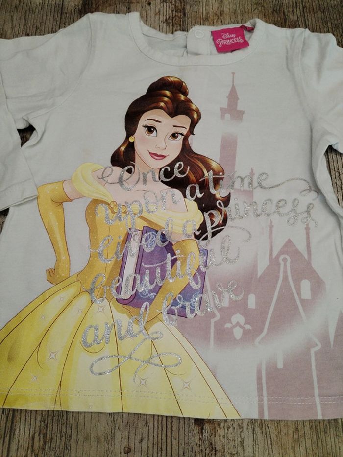 Joli t-shirt manches longues princesse la belle et la bête a paillettes Taille 24 mois / 2 ans Très bon état Envoie rapide et soigné Réductions activées N'hésitez pas à faire des lot ☺️