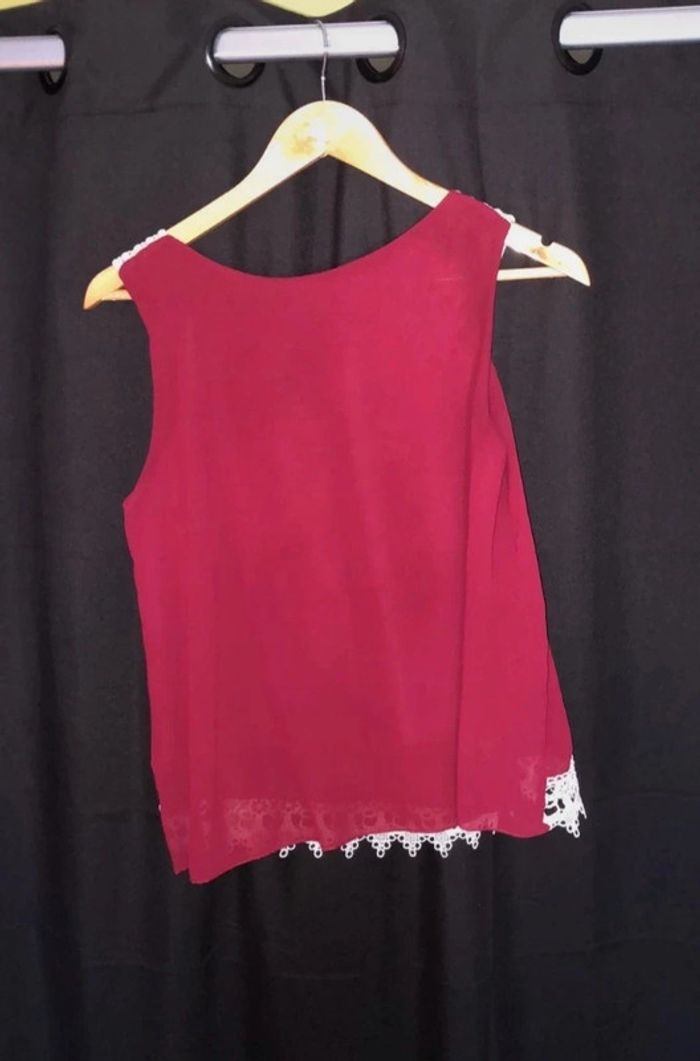 Magnifique débardeur été avec dentelle Très bon état Taille M 38 Couleur framboise Envoie rapide et soigné Réductions activées N'hésitez pas à faire des lot 😊