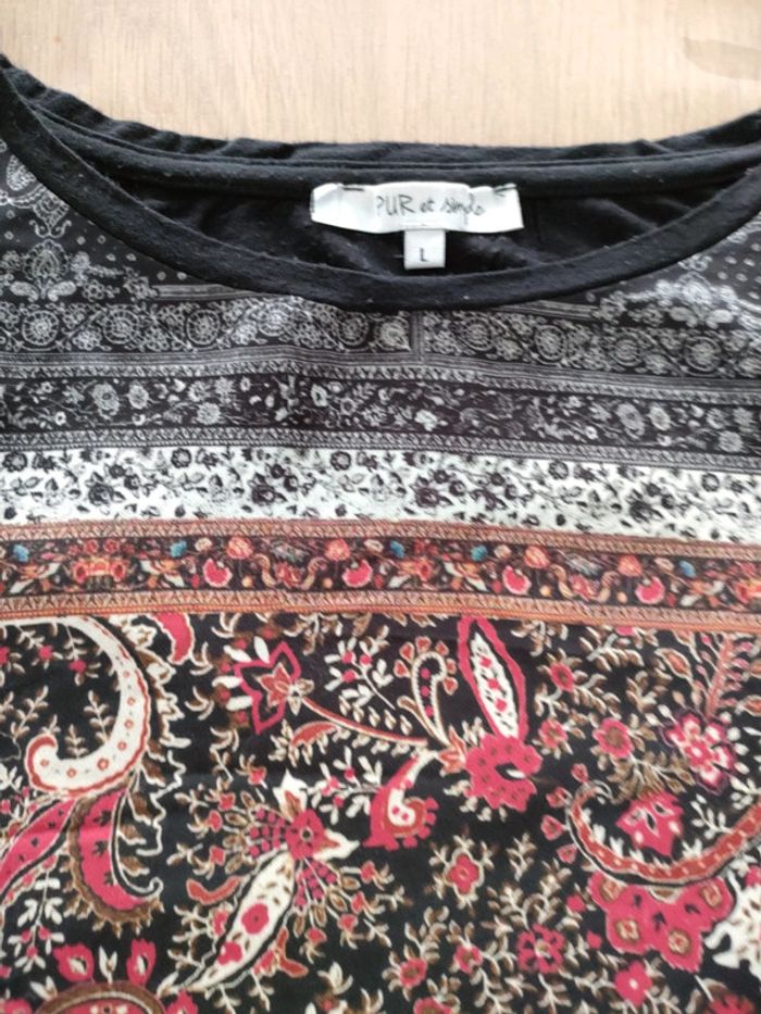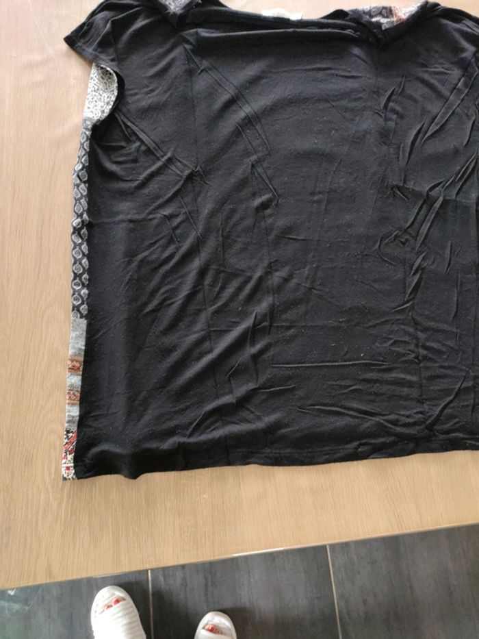 T-shirt large manches courtes. Motifs à l'avant et noir derrière. Pur et simple taille L.
