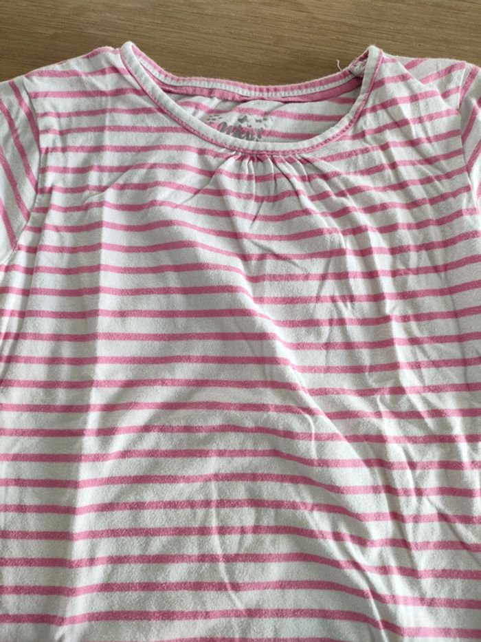 T-shirt rose à rayures.