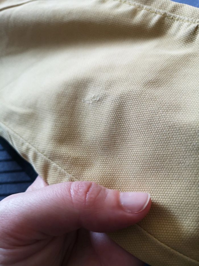 Super style mis à part ces 2 accrocs d'où état satisfaisant et le prix en tient compte. .vraiment jaune comme sur la première photo
