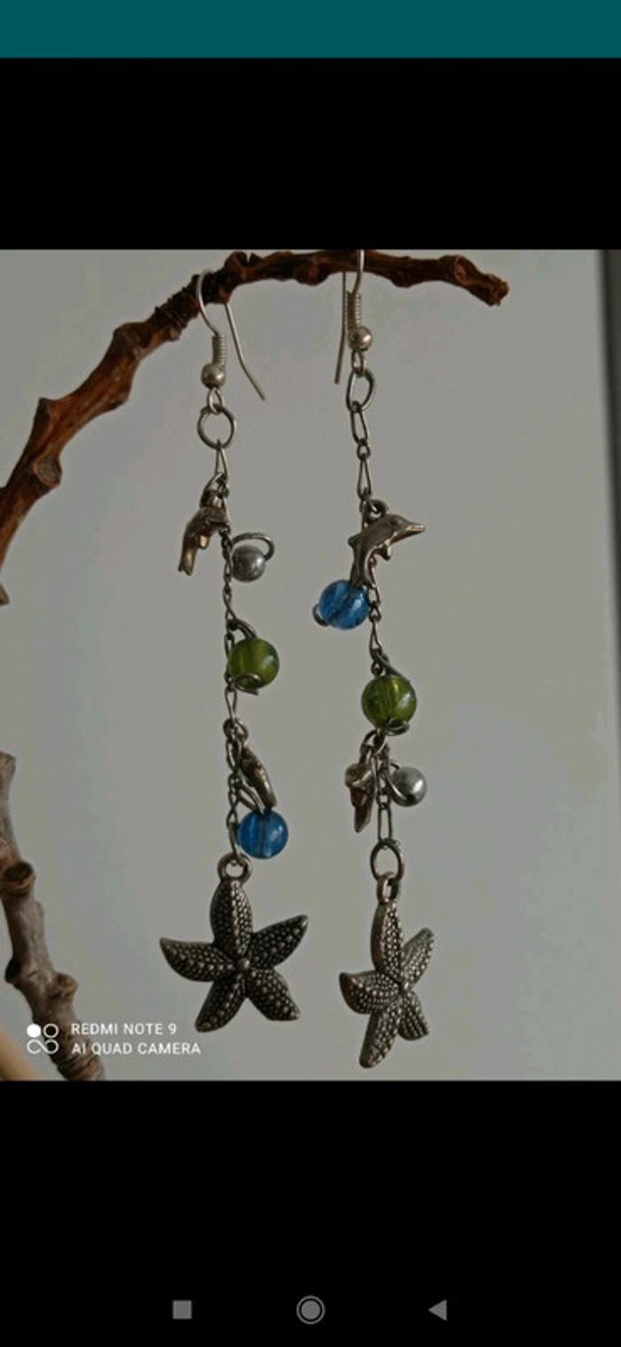 Boucles d'oreilles dauphins 🐬 et étoiles de mer - photo numéro 2