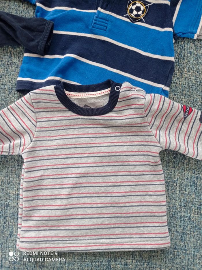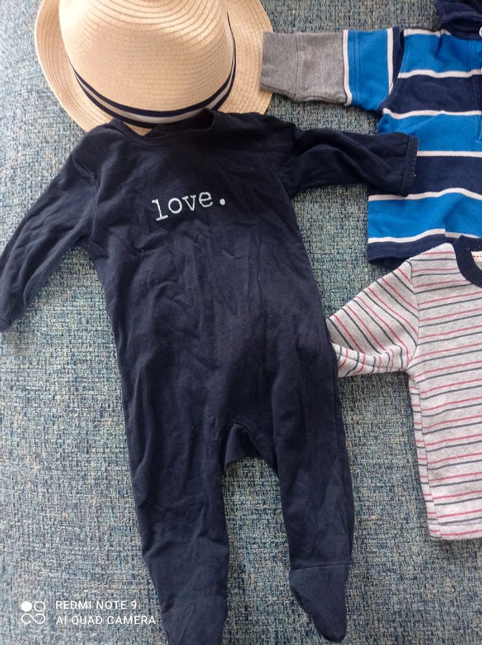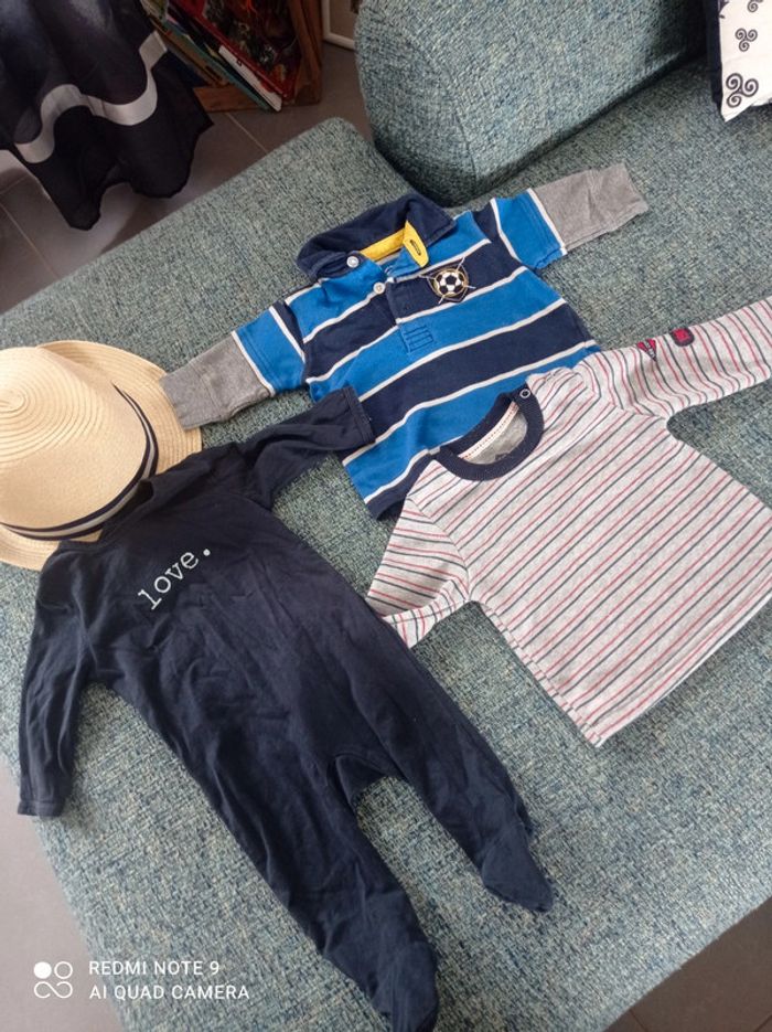 Besoin de place tout est parfait état. Un pyjama Kiabi presque pas mis idéal pour l'été trois mois Un haut Lee Cooper plutôt printemps chaud comme vêtement trois mois Un haut football carter's 3 mois automne ou printemps. C'est un bébé né en avril...