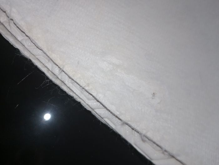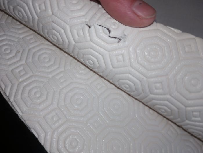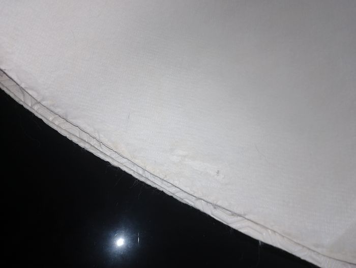 Protège table ronde bulgomme 135cm de diamètre sous nappe de protection 1 léger trou mais ne se voit pas une fois posé et 1 petit endroit où c légèrement tâché