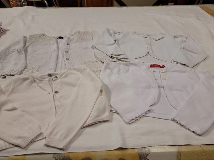 En bon état 1 gilet blanc doré 3 boléros blancs / crème Diverses marques #boubou2795fille18mois