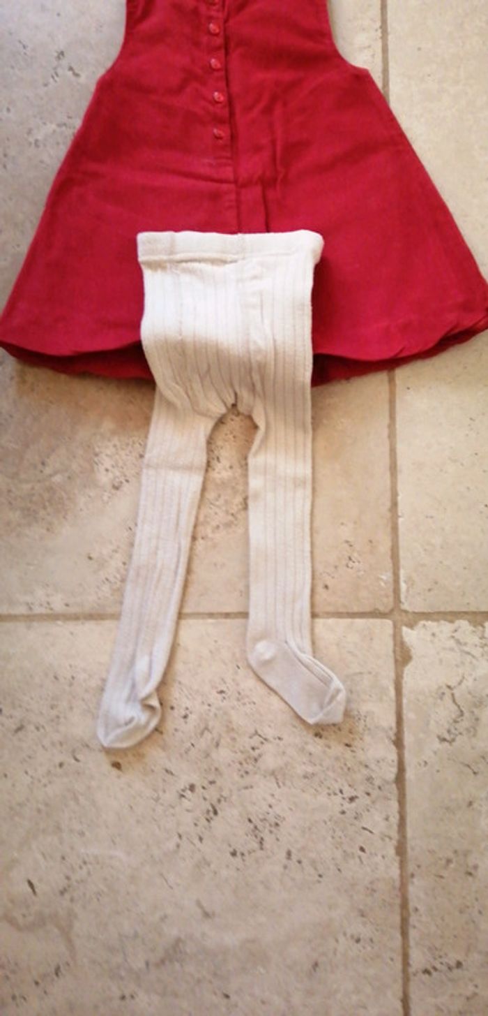 Robe en velours rouge en 6 mois et collants beige - photo numéro 3