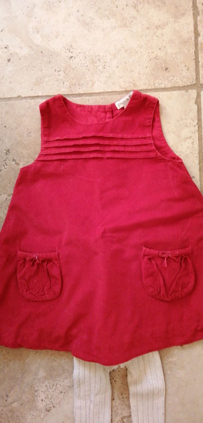 Robe en velours rouge en 6 mois et collants beige - photo numéro 1