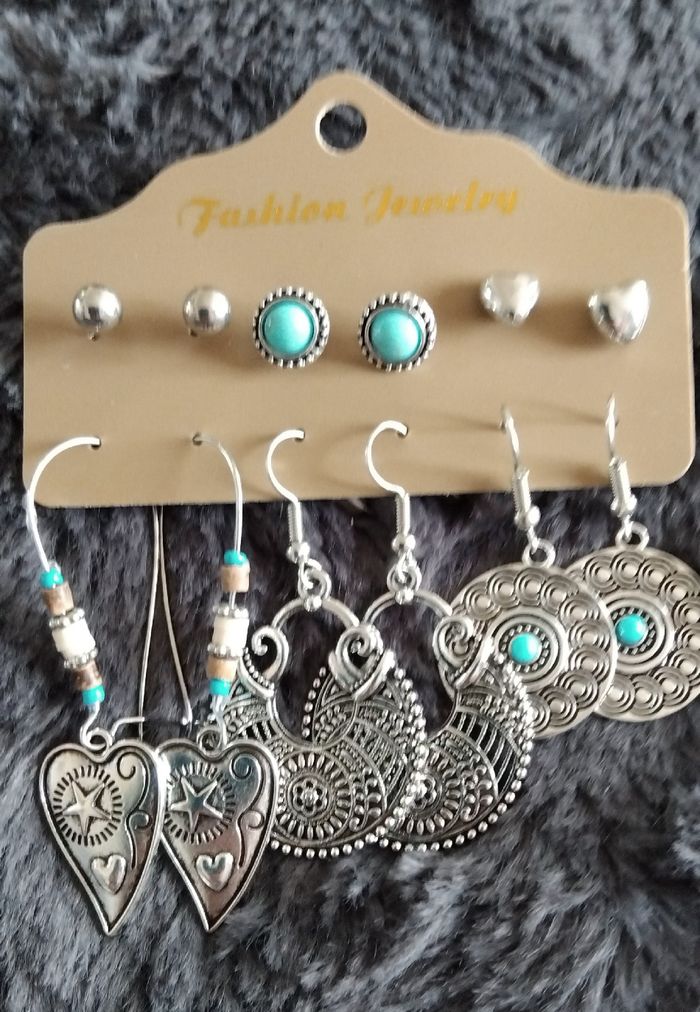 Lot de 6 paires de boucles d oreilles à clous - argentées et pierres turquoises