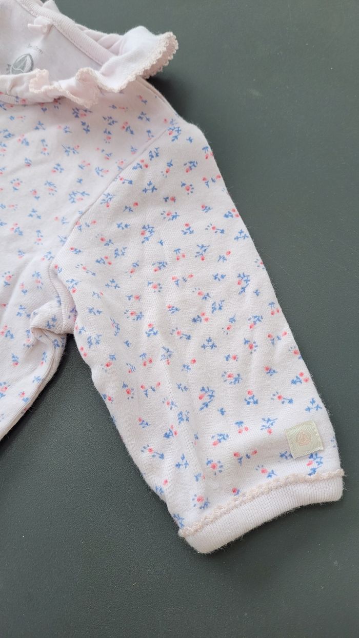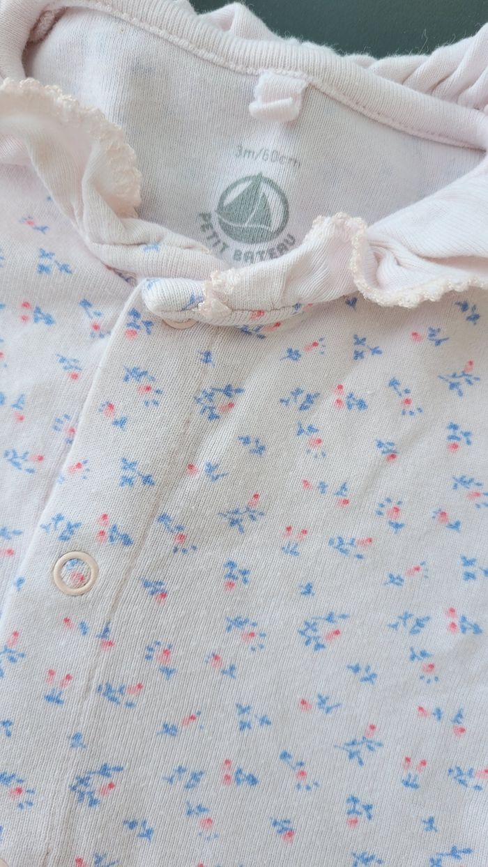 Pyjama 3mois petit bateau fleuri tout léger. Ouverture sur le devant. Très bon état.