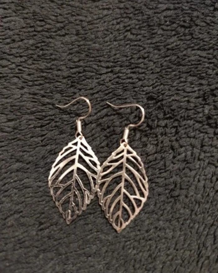 Boucles d'oreilles pendantes fantaisie métal argenté feuille
