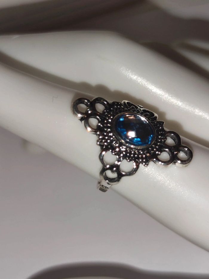 Bague fantaisie métal argenté et pierre bleue - photo numéro 2