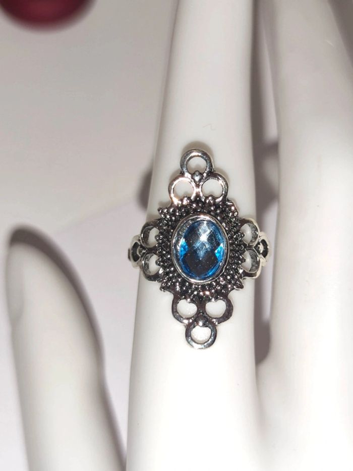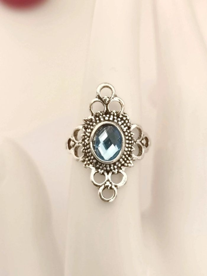Bague fantaisie métal argenté et pierre bleue - photo numéro 1