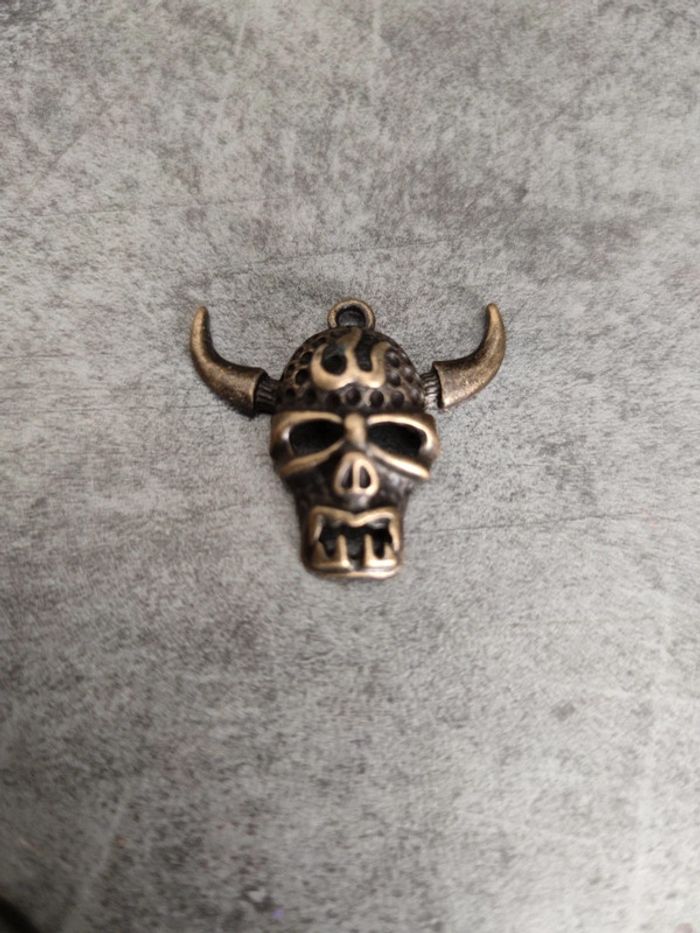 Pendentif fantaisie métal doré vieilli tête de mort Viking - photo numéro 1