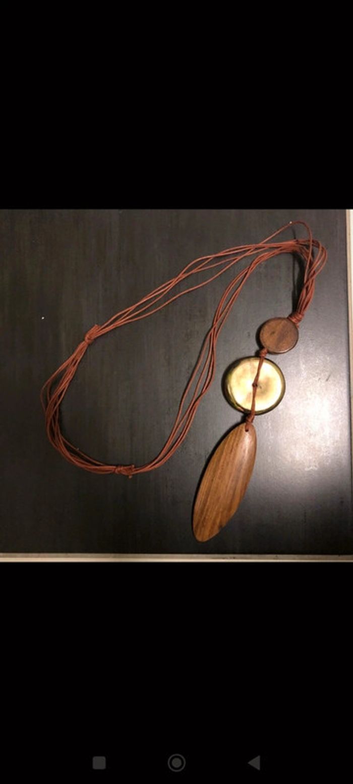 🌺 collier sautoir marron perles en bois et métal doré - photo numéro 1