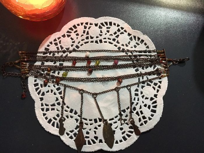 Bracelet fantaisie métal bronze cuivré et perles - photo numéro 2
