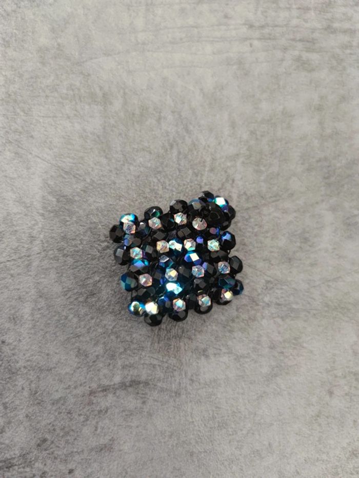 bague fantaisie carrée en perles noires métalisées bague fantaisie faite main, taille unique #xadels_bijoufantaisie #xadels_bagues