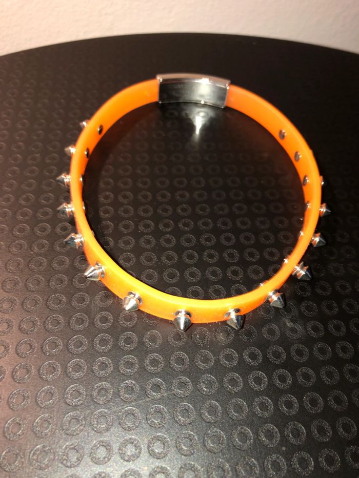 🌺 collier ras de cou clous orange et métal argenté - photo numéro 1