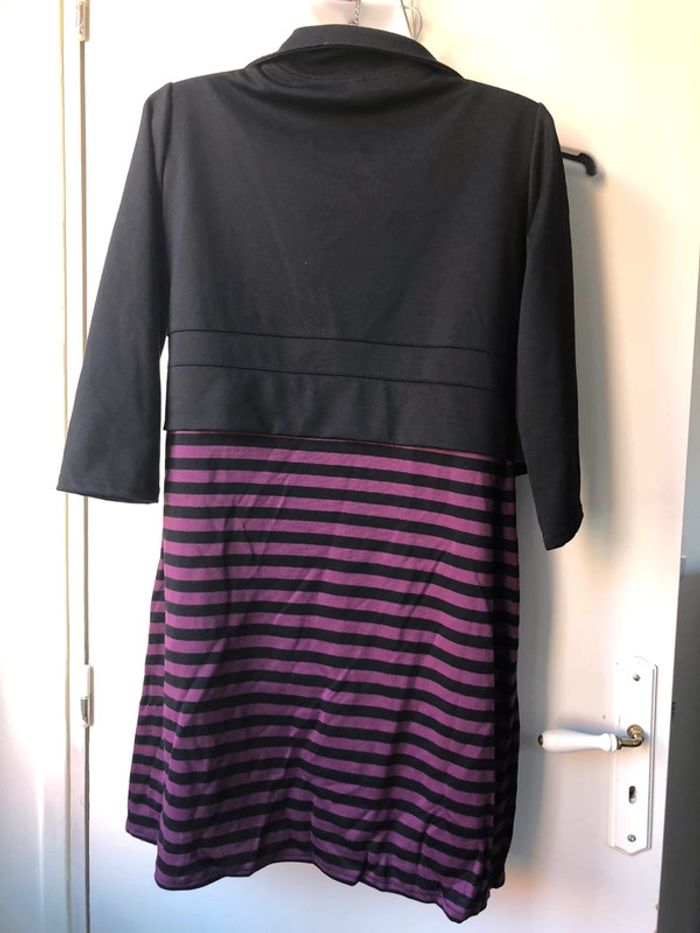 Robe rayée violet et noir avec gilet boléro intégré t40 - photo numéro 3