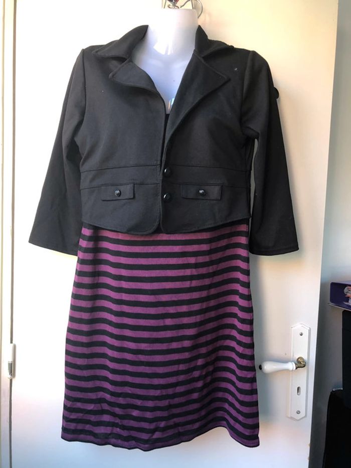 Robe rayée violet et noir avec gilet boléro intégré t40 - photo numéro 1