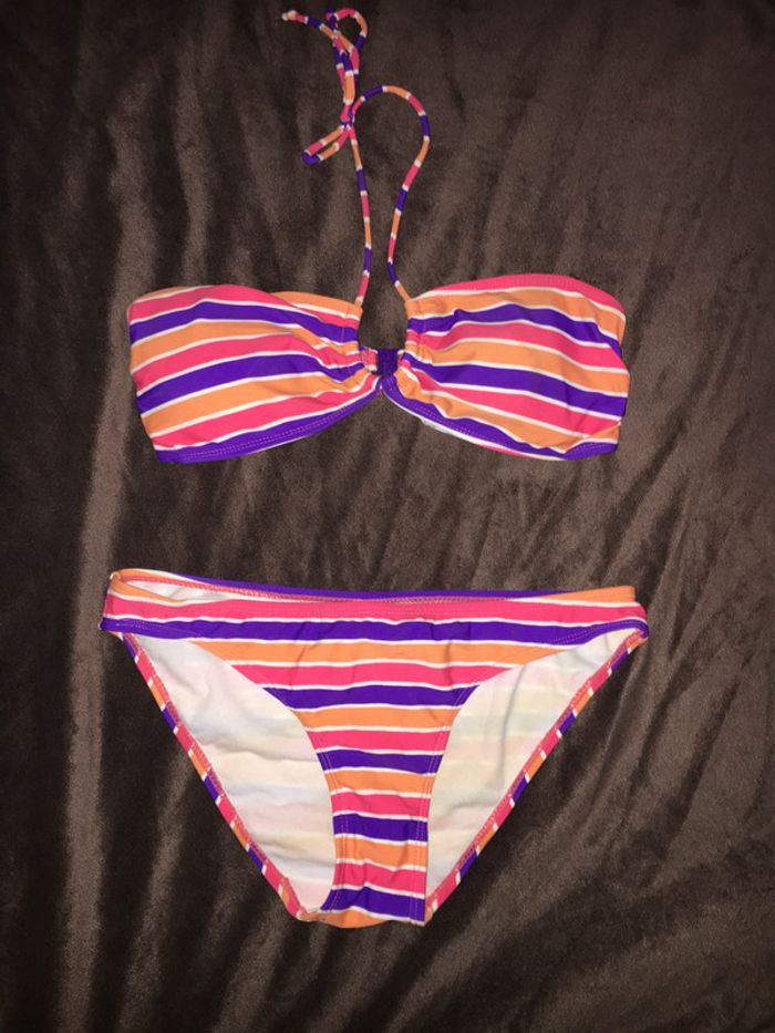 Maillot de bain rayé violet et orange T40 - photo numéro 1