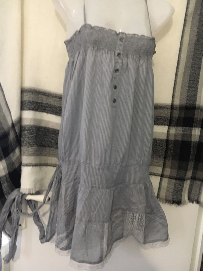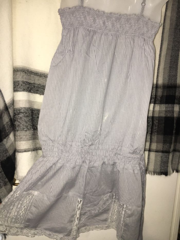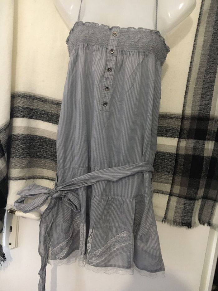 Robe tunique grise rayé blanc et dentelle la mode est à vous