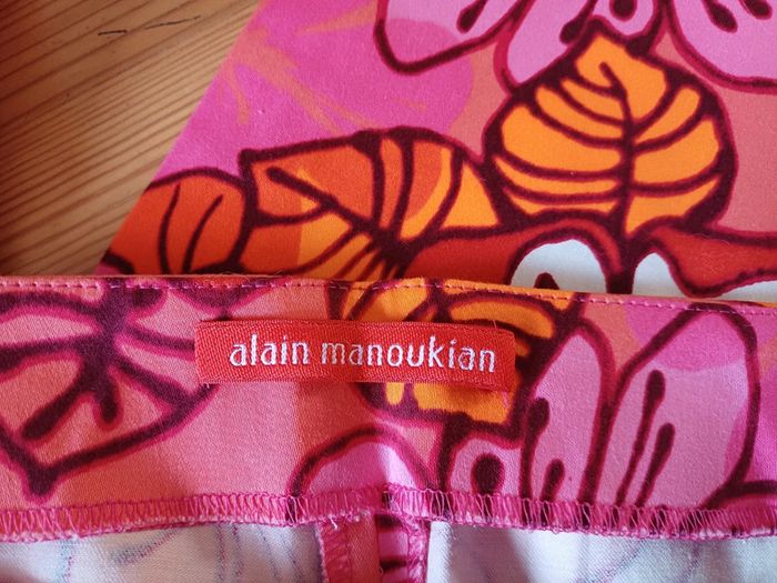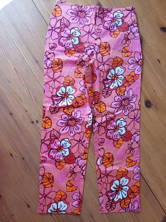 Pantalon court rose avec des fleurs en très bon état. Taille 38.
